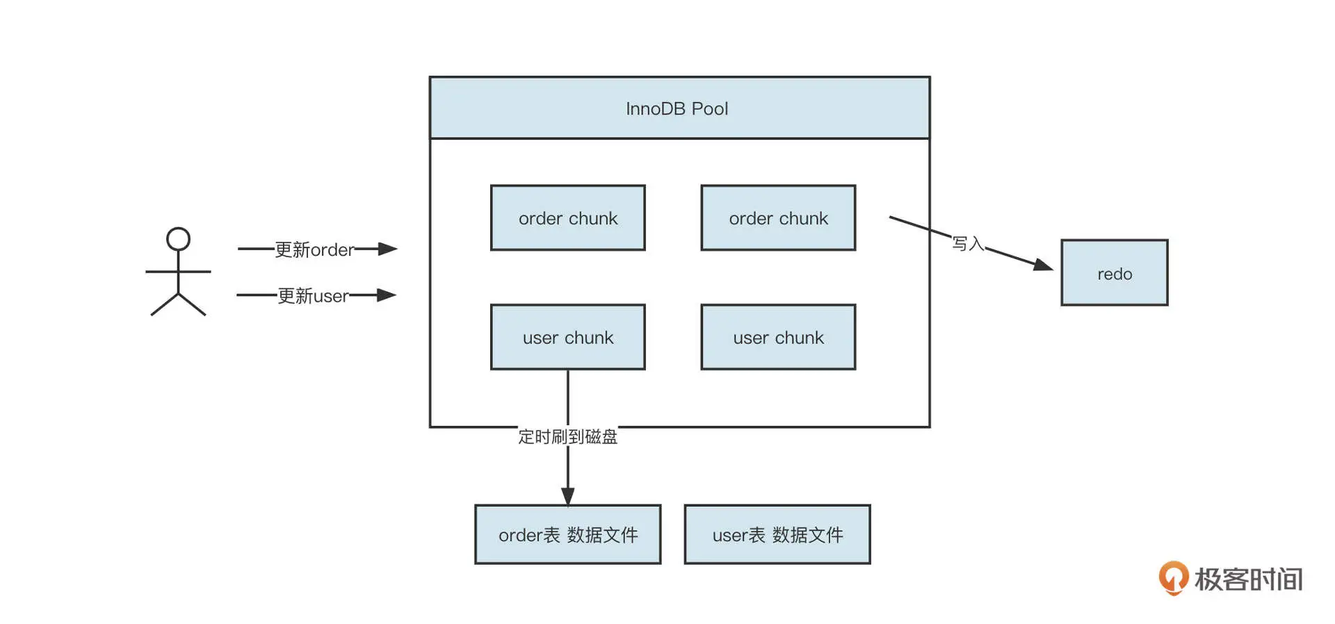 一个数据库中有很多表,每一张表都存储了很多数据,这些数据分布在磁盘不同的区域,而且用户在更新数据时也很分散。例如他们会时而更新订单表,时而更新用户表,那该怎么优化呢?