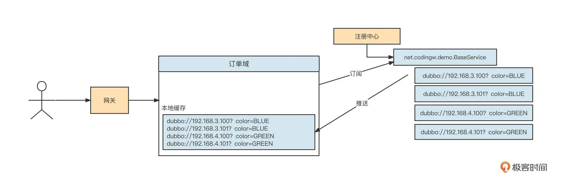 具体的操作是,在 Dubbo 中为这个场景引入 Tag 路由机制。