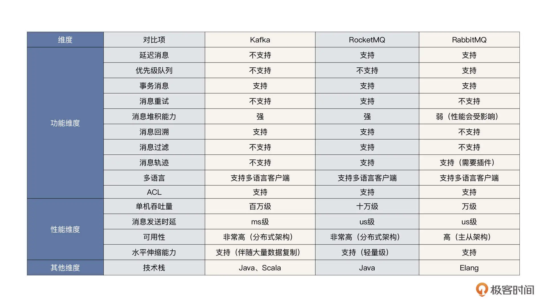 但我也并不是说功能特性就一点都不重要。这一点我在后面讨论 RocketMQ 与 Kafka 的选型时会再次谈到。