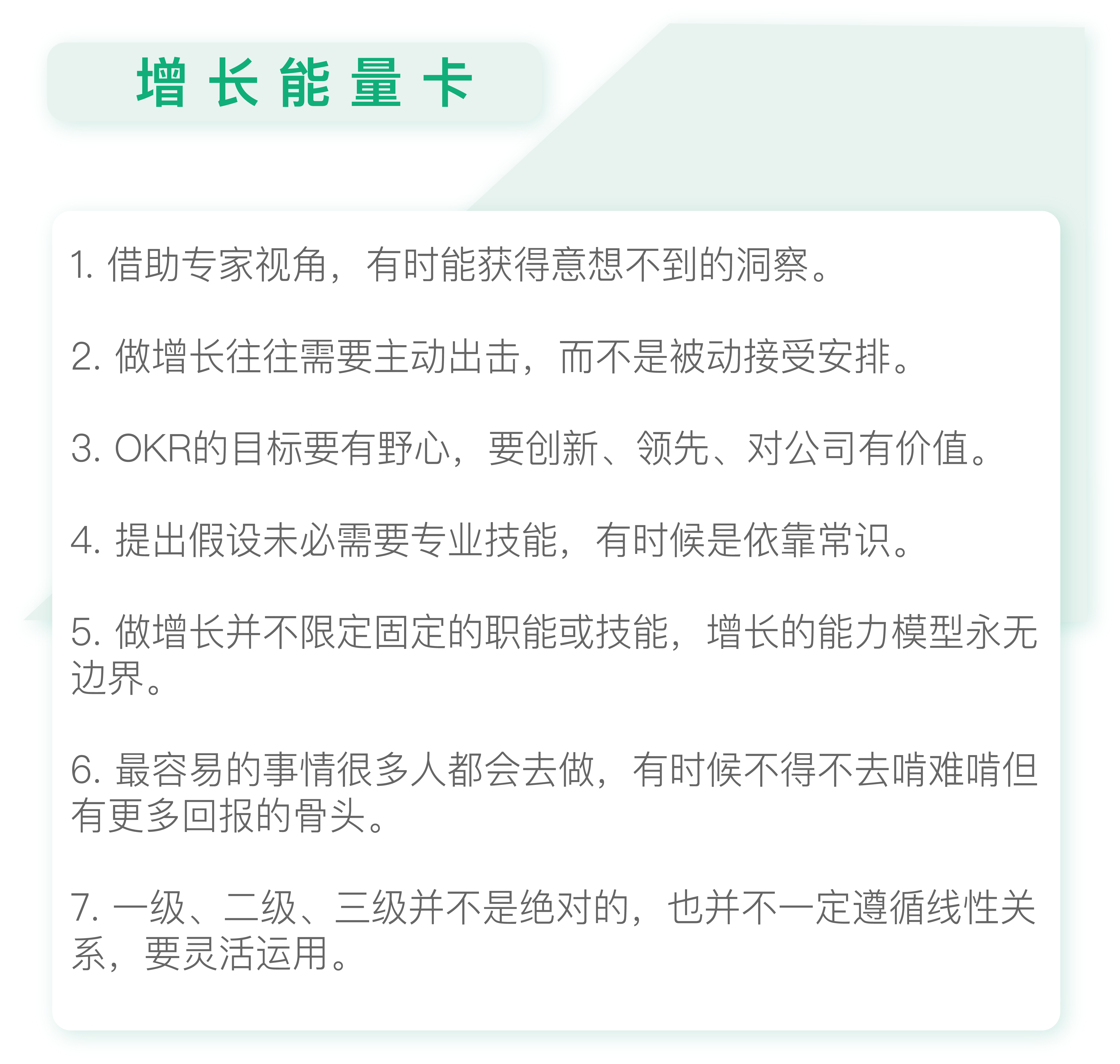 关于OKR制度,当时的老板曾经提出过非常明确的要求:一是要足够创新;二是要行业领先;三是对公司有价值。这些要求令我受益匪浅。所以我们定目标,一定不会定容易实现的目标,而是要尽量定有挑战性的。