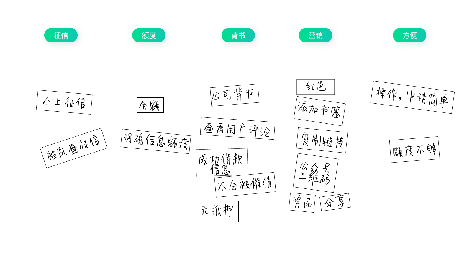 接下来我们把用户诉求提炼成几个典型的分类,这些分类就是三级假设;再把其它内容分别摆放进对应的分类位置里,这些内容就是每个假设下面分解出来的具体事项。