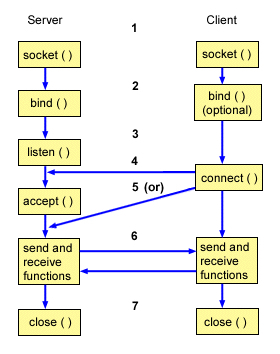 • 数据传输:当ClientSocket和ServerSocket建立连接后,ClientSocket调用send()函数,ServerSocket调用receive()函数,ServerSocket处理完请求后,调用send()函数,ClientSocket调用receive()函数,就可以得到得到返回结果。