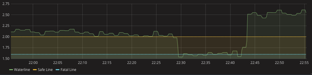 在容量评估阶段,你可以获取集群的最大容量和集群的实际运行负荷,有了这两个数据后该如何做调度策略呢?我在实际线上业务使用的是水位线来进行调度决策。就像水库的水位线一样,要实时观测水库的蓄水量,如果因为长时间降水导致水库蓄水量超过警戒水位线就需要开闸泄洪;如果长时间干旱降水量太少,就需要关闸蓄水,以保持水库中的蓄水量始终在一个合理的水位线上。这样的话,任意时刻的水位线就是集群的最大容量除以集群的实际运行负荷,可以实时监控集群的水位线。