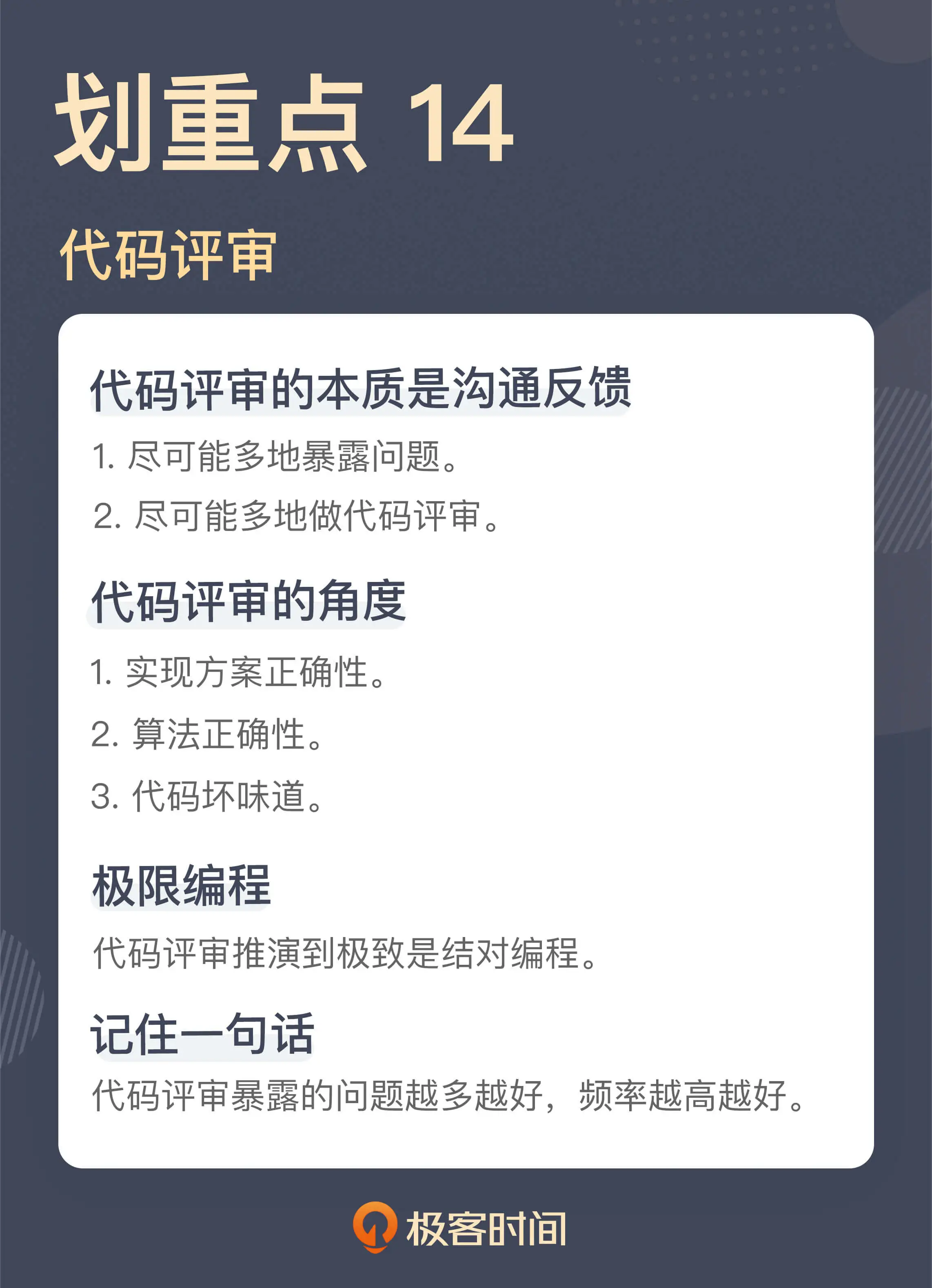 如果今天的内容你只能记住一件事,那请记住:代码评审暴露的问题越多越好,频率越高越好