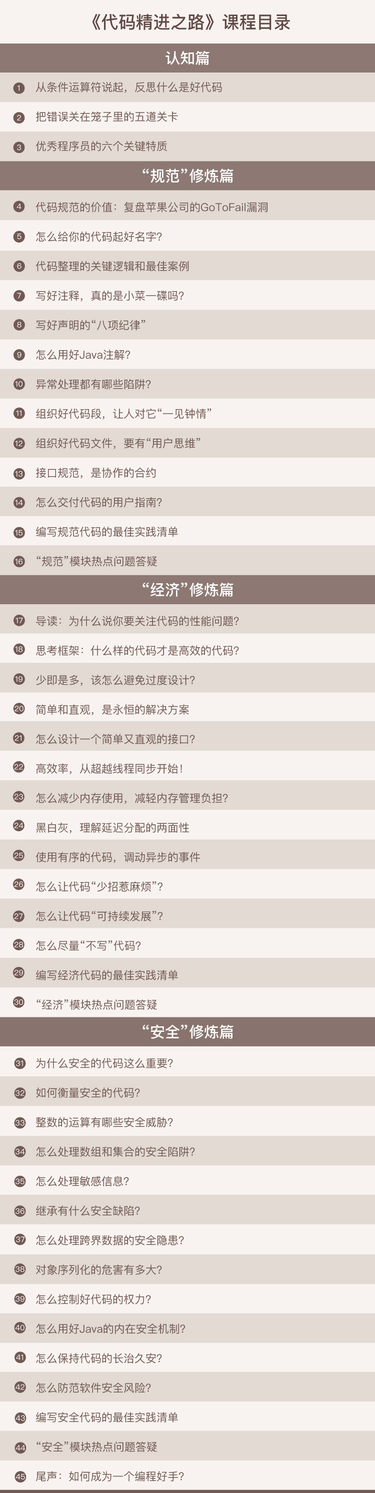 在这个专栏里,我会带着你开始一段代码精进的旅程。和你一起来看一看、摸一摸那些年别人踩过的坑,来聊一聊、试一试我们的代码可以写得有多棒,享受这个打怪升级的过程。
