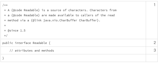 - 比如在上面的例子中,如果需要修改Readable,当看到“since 1.5”的标签时,我们就不需要检查Java 1.4的代码了。