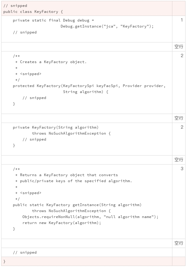 下面的这个例子,也是来自JDK的源代码。你可以清晰地看到,这段代码中的规范是非常典型的。