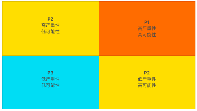 2. 中优先级 (P2): 高严重性、低可能性; 低严重性、高可能性;