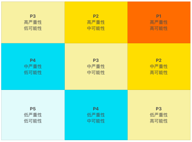 1. 第一优先级 (P1): 高严重性、高可能性;