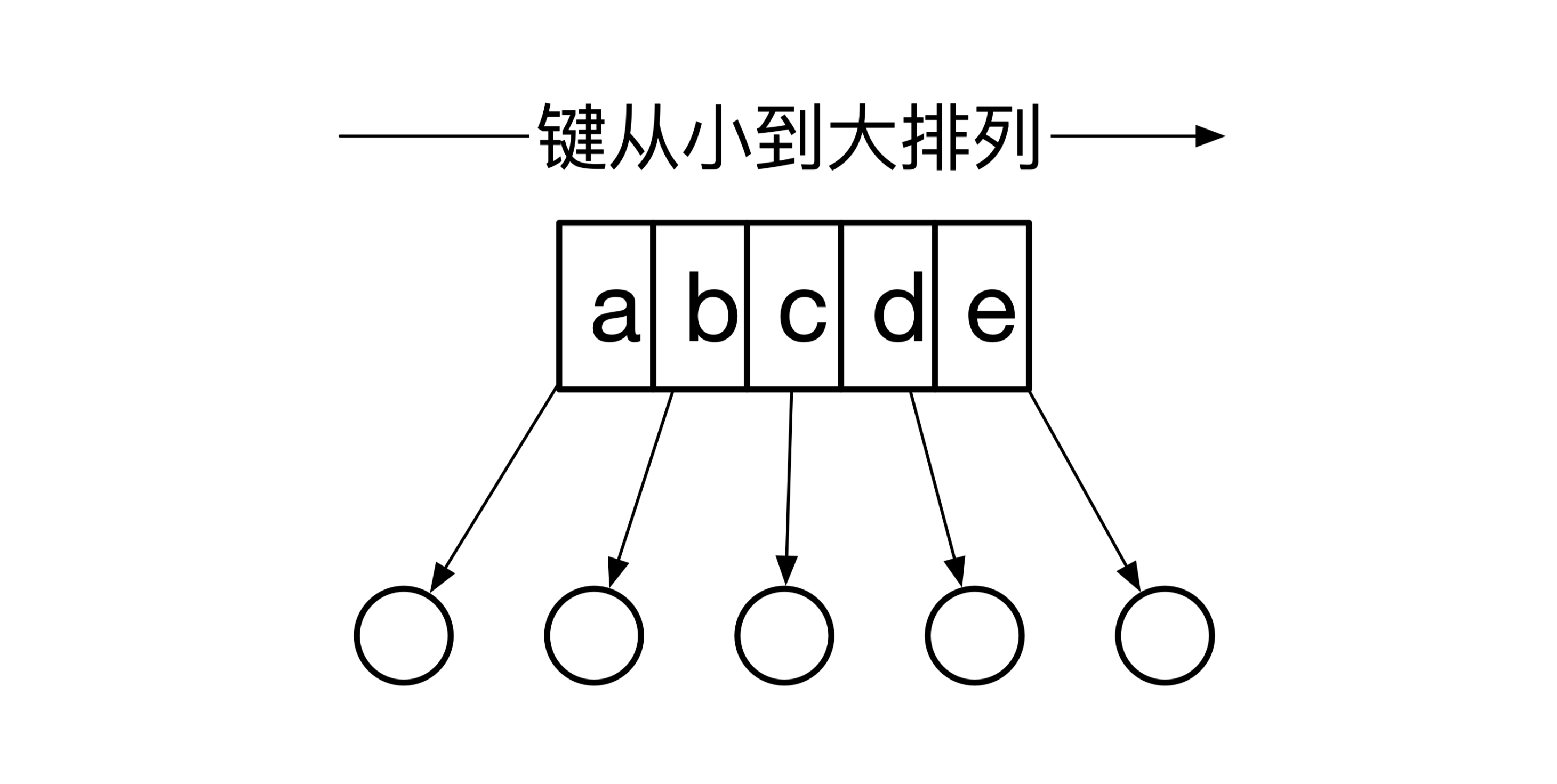 SSTable的全称是Sorted String Table。其实SSTable就是一个存储在文件的Map,这个Map的键的类型是字符串,在存储的时候这些键是按从小到大的顺序排列的。下面这幅图是SSTable的一个简单例子: