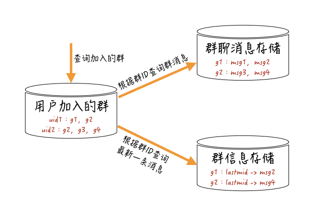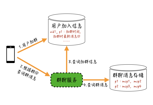 用户查询群聊消息的大概流程,你可以参考下图:-