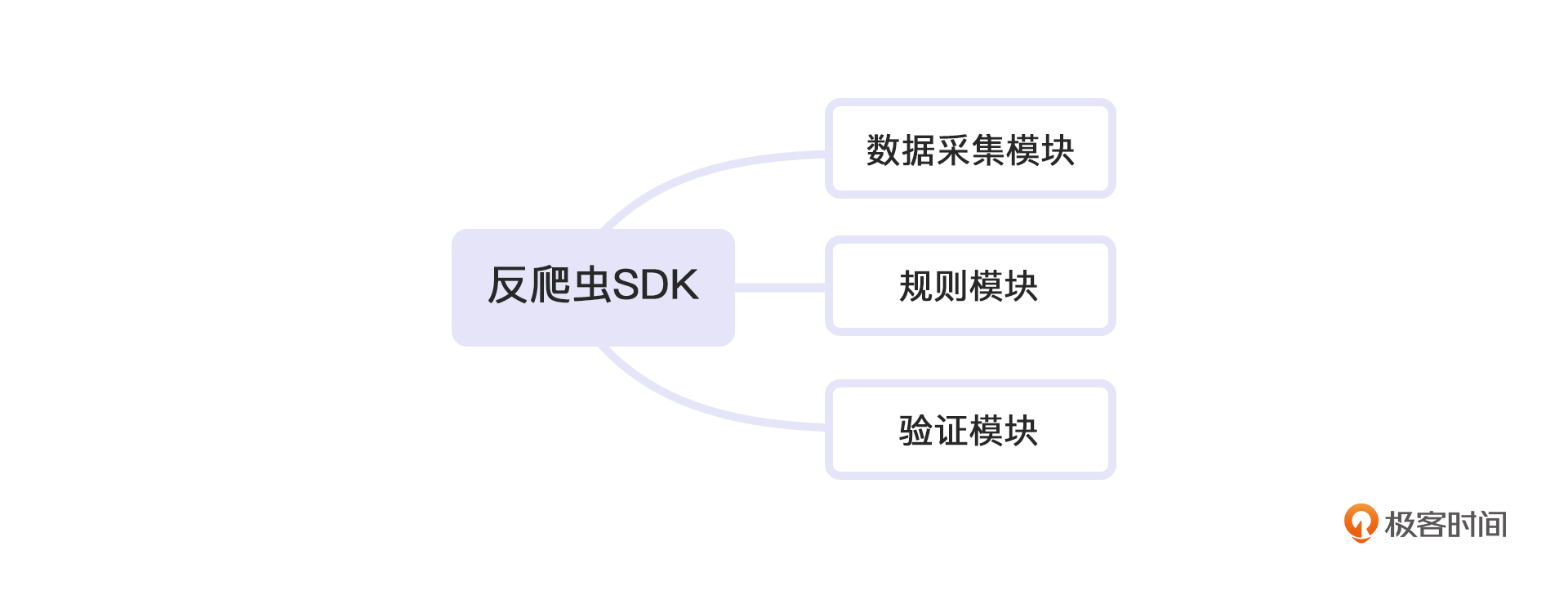这样,三个模块就都讲完了。我们回头看一下,这三个模块构成了你的反爬SDK, 使用方式其实是一种依赖注入的思想。系统并不包含反爬代码,但是我们的SDK通过外部调用的方式把他们都接入了进去。 那么回到开头,除了依赖注入,我们还提了一种方式叫代理对不对?