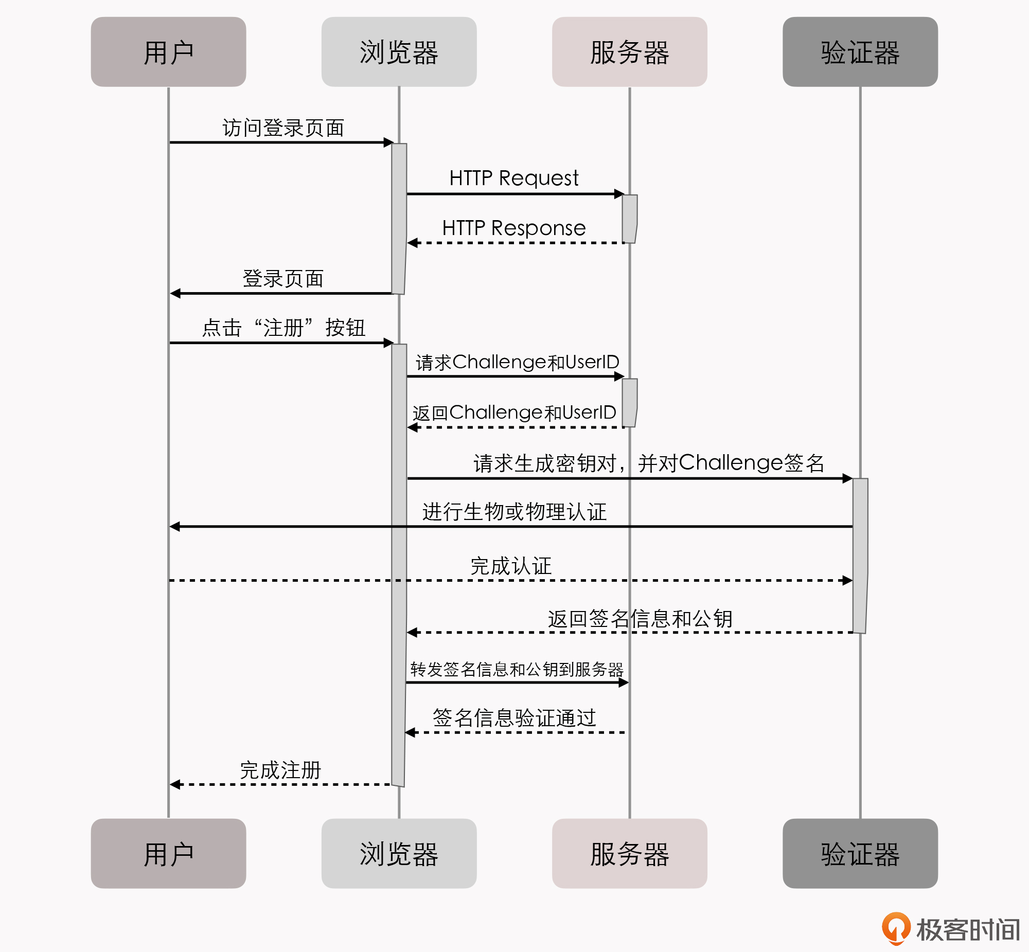 WebAuthn规范涵盖了“注册”与“认证”两大流程,我先来介绍下注册流程的大致步骤: