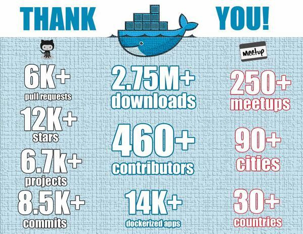 这里我还想让你看一张图片,它是Docker开源一年后(截至2014年12月)获得的成绩。