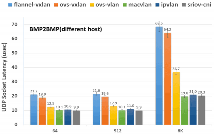 不过,虽然MACVTAP提升了SR-IOV的易用性,但是这种转接又会带来额外的性能损失,并不一定会比其他网络方案有更好的表现。