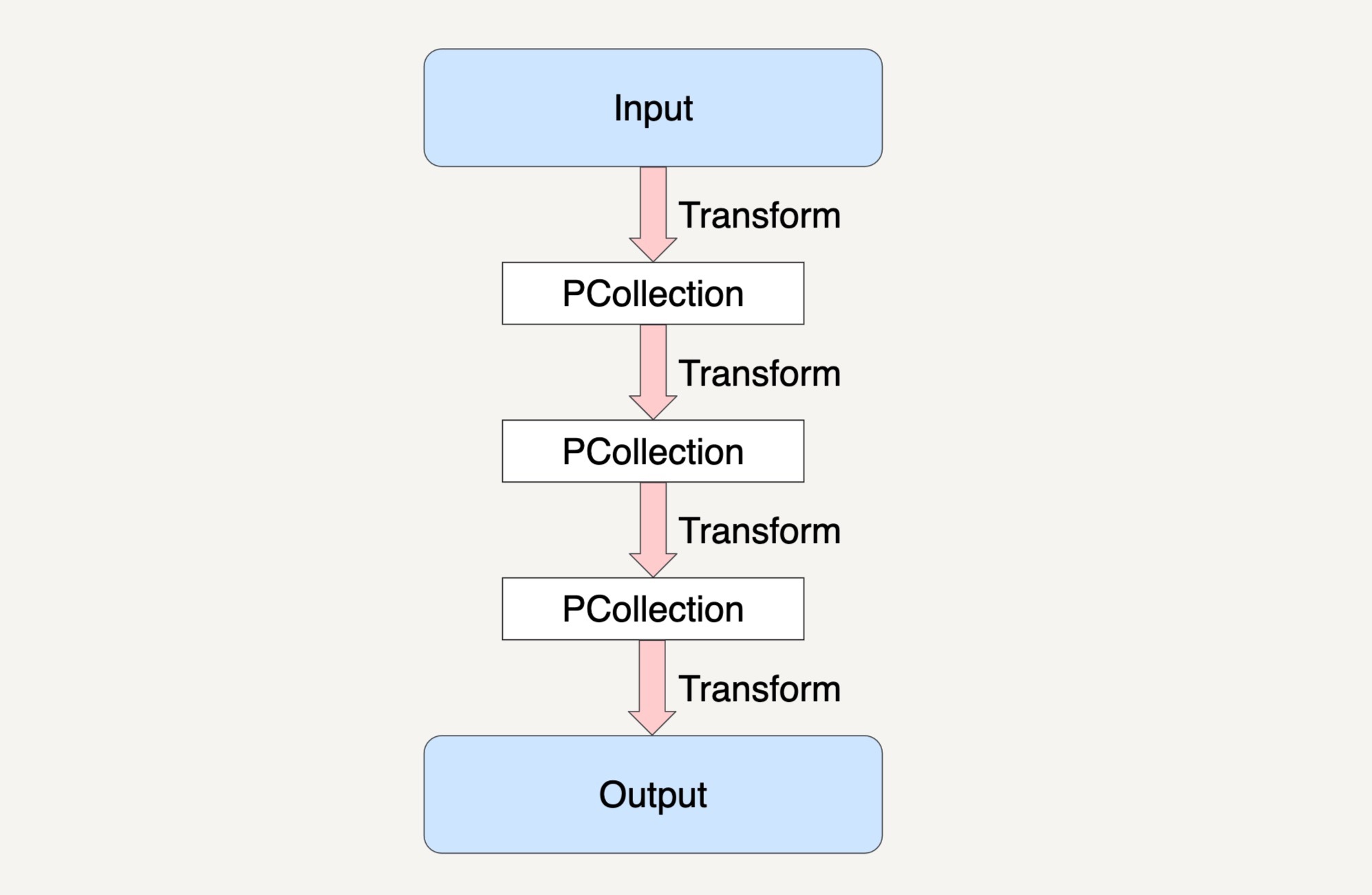 在前面的章节中,我们一起学习了如何使用PCollection来抽象封装数据,如何使用Transform来封装我们的数据处理逻辑,以及Beam是如何将数据处理高度抽象成为Pipeline来表达的,就如下图所示。