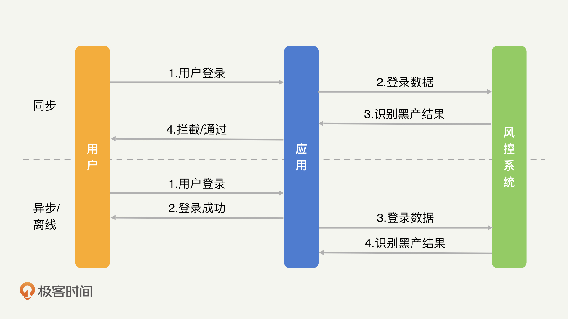 举个例子,在提现操作中,提现成功后,钱就已经从公司转移到黑产手里了,我们没有办法追回,因此我们必须采用同步模式,在提现操作前对黑产进行拦截。