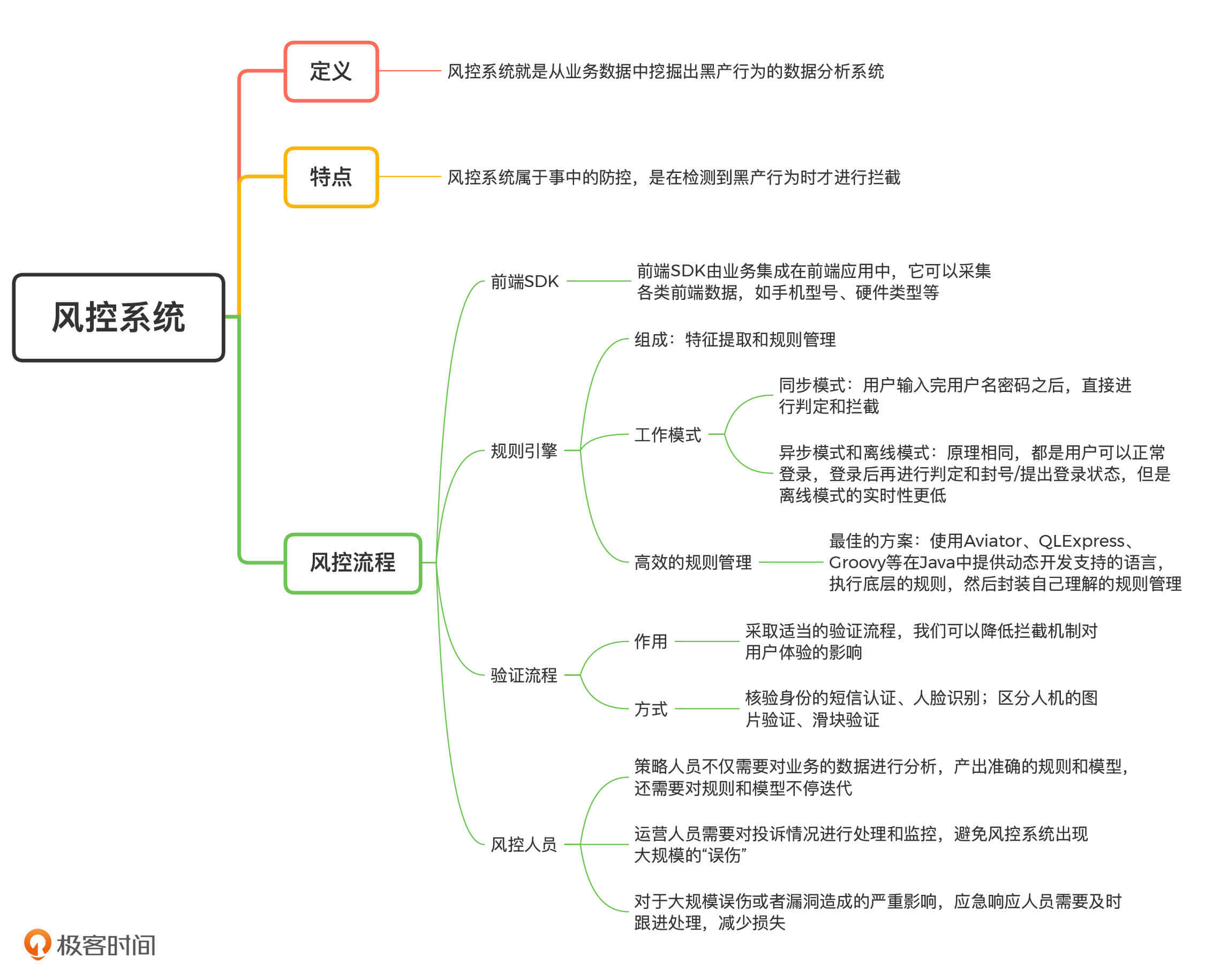 基于业务场景的不同,验证的方式还有很多,比如,核验身份的短信认证、人脸识别,区分人机的图片验证、滑块验证等。很多应用都会对存疑的用户和行为施加各种验证流程,来保障用户身份的真实可靠。所以,为了让风控系统成功落地,验证流程是我们不能忽视的一个环节。