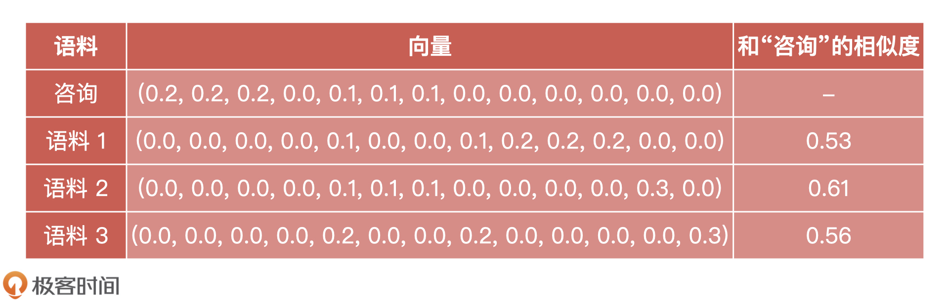 因此,这三个语料和用户咨询问题的相似度的排序就是“语料 2”>“语料 3”>“语料 1”。根据这个方法,我们就能获取和用户咨询问题最相似的语料,然后将语料对应的标准回答反馈给用户了。