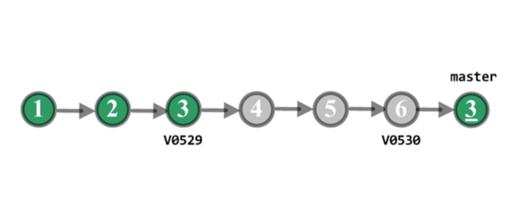 第三种情况:代码已经发布到线上,线上包回滚后发现是新上线的代码引起的问题,且需要一段时间修复,此时又有其他功能需要上线,那么主干分支必须把代码回滚到产品包V0529对应的commit。 如图3所示。