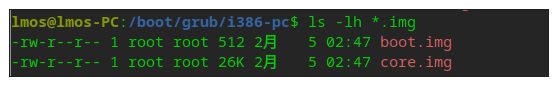 其中,boot.img被GRUB的安装程序写入到硬盘的MBR中,同时在boot.img文件中的一个位置写入core.img文件占用的第一个扇区的扇区号。