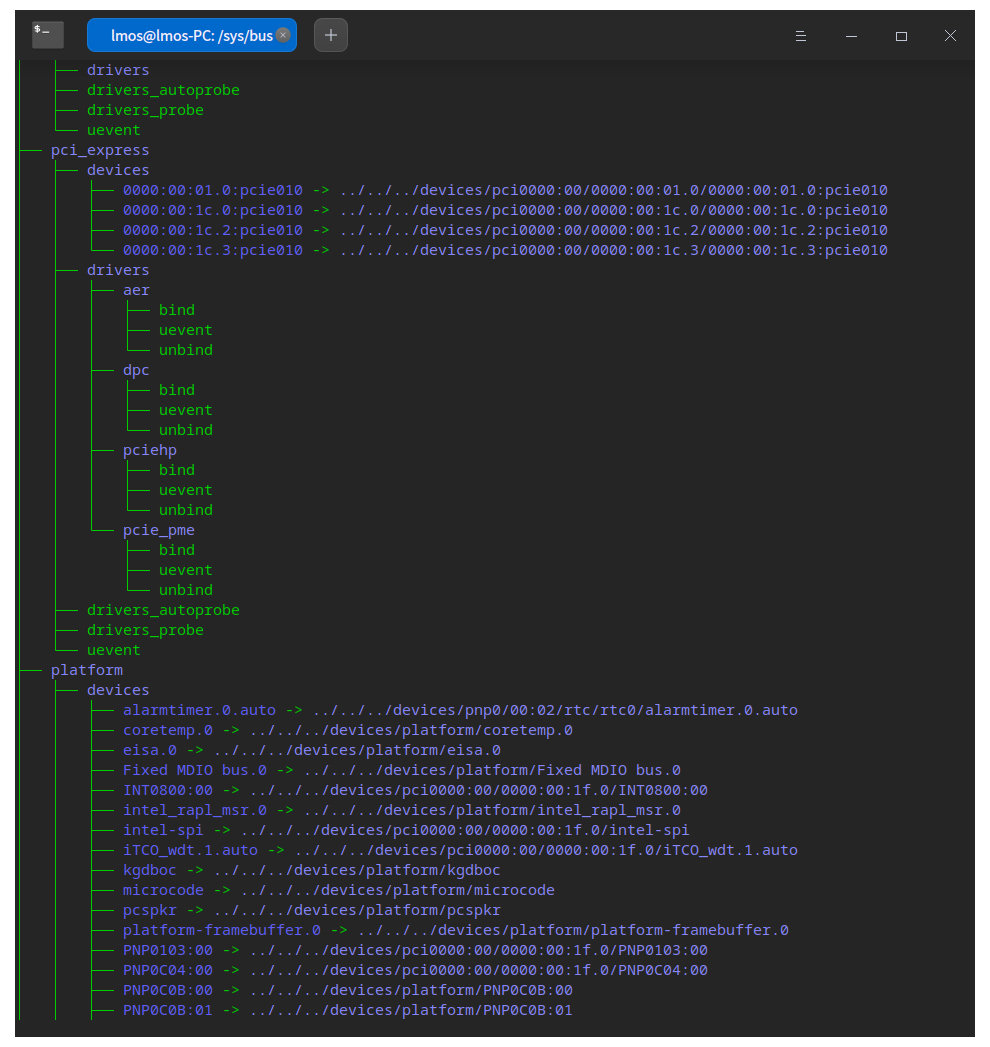 上图是我系统中总线名和设备名,你的计算机上可能略有差异,因为我们的计算机硬件可能不同,所以有差异是正常的,不必奇怪。
