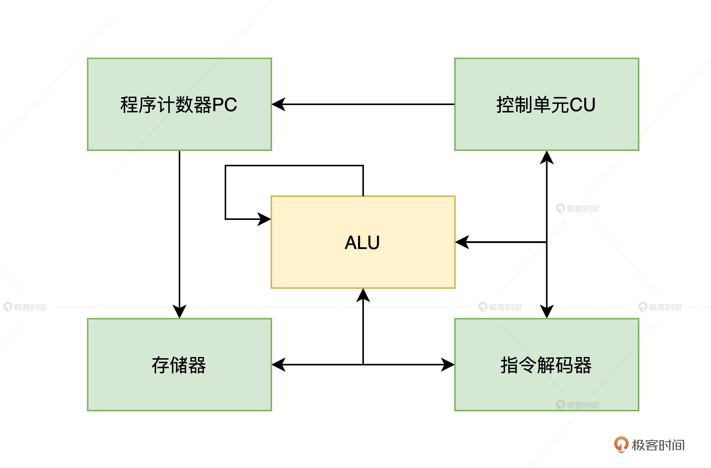 看了CPU核心组件执行的这6个步骤,不知道你有没有联想到第一节课的图灵机的执行原理?没错,现代CPU架构与实现虽然千差万别,但核心思想都是一致的。
