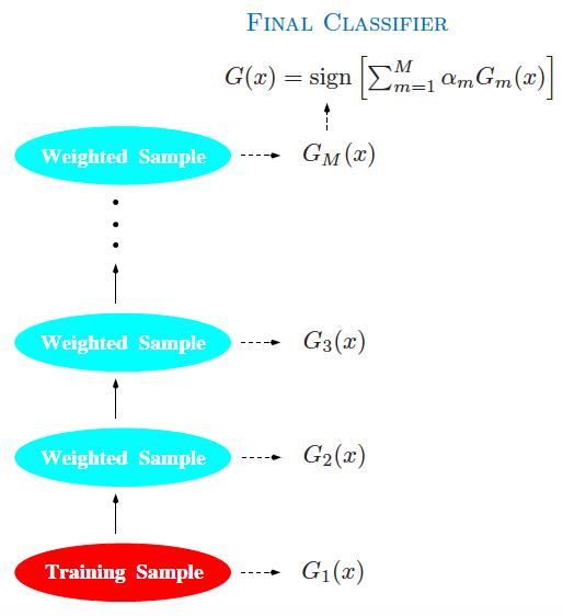 提升方法示意图(图片来自Elements of Statistical Learning,图10.1)