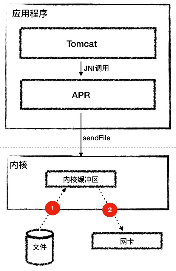 而Tomcat的AprEndpoint通过操作系统层面的sendfile特性解决了这个问题,sendfile系统调用方式非常简洁。
