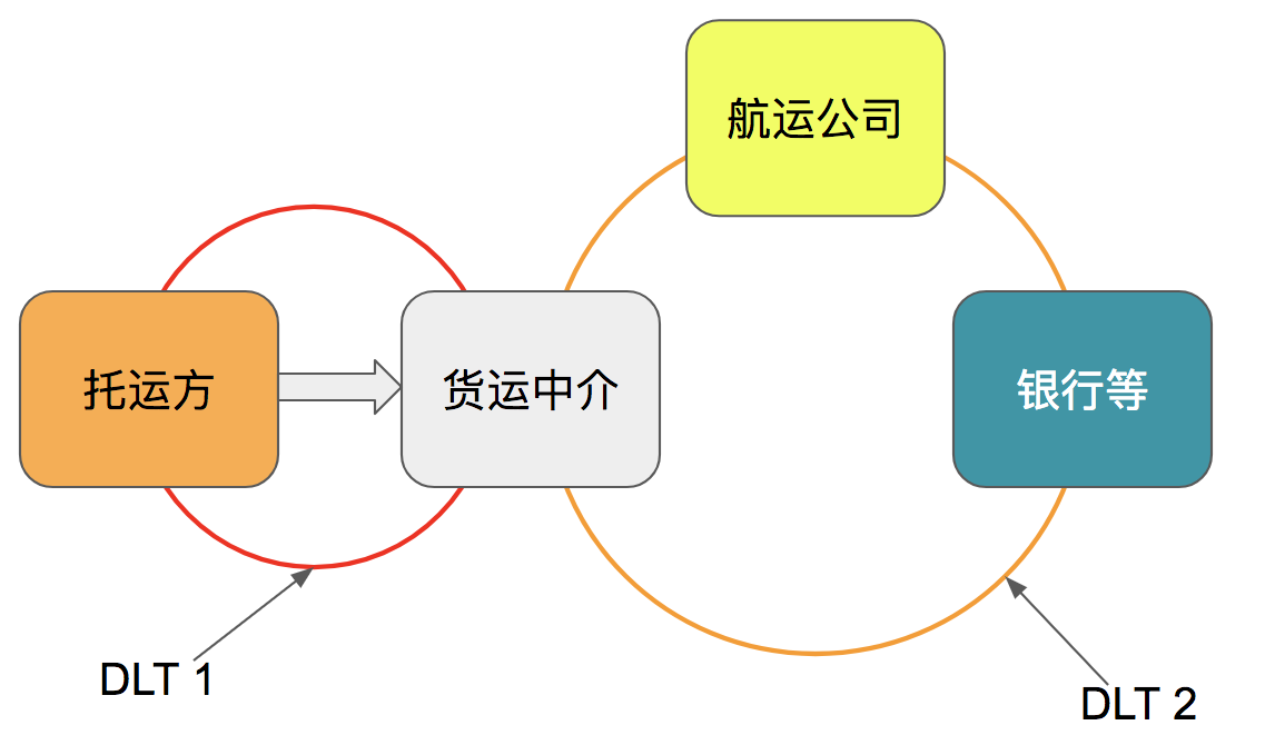 在上述航运的案例中,DLT可以围绕航运公司的订单展开,参与方都可以成为DLT的会员节点。