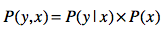 解释清楚了条件概率,我就可以列出概率、条件概率和联合概率之间的“三角”关系了。简单地说,联合概率是条件概率和概率的乘积,采用通用的公式来表达就是: