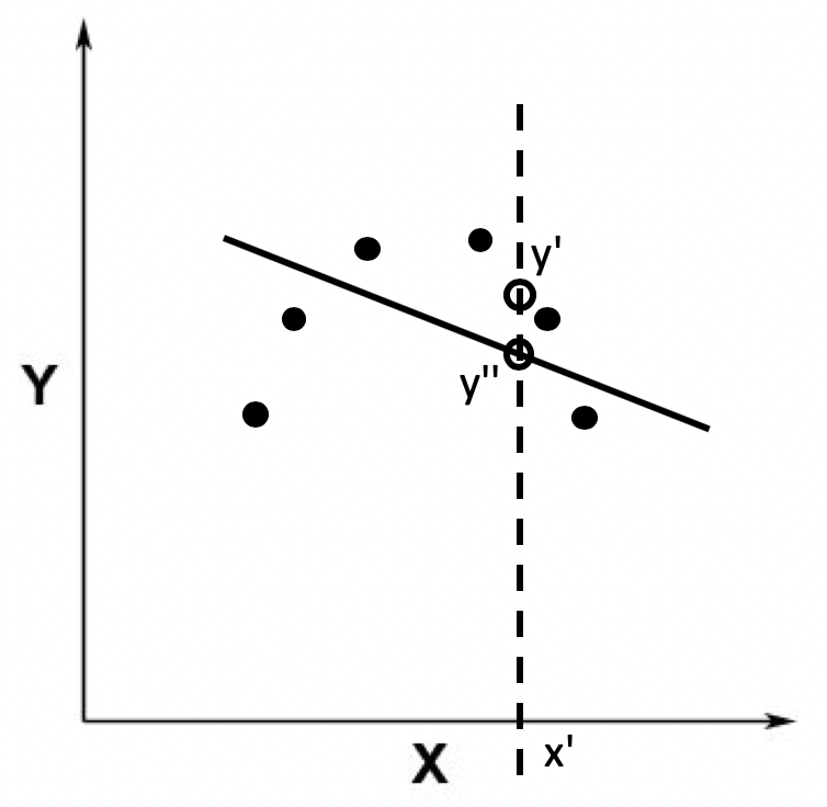 拟合模型其实就是指通过模型的假设和训练样本,推导出具体参数的过程。有了这些参数,我们就能对新的数据进行预测。这样说有些抽象,我画了张一元回归的图来帮助你理解。假设我们的数据点分布在一个二维空间。