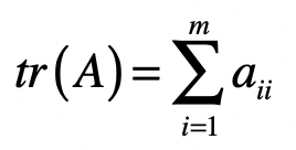其中\((XB-Y)'\)表示矩阵\((XB-Y)\)的转置。而\(tr()\)函数表示取对角线上所有元素的和,对于某个矩阵\(A\)来说,\(tr(A)\)的值计算如下: