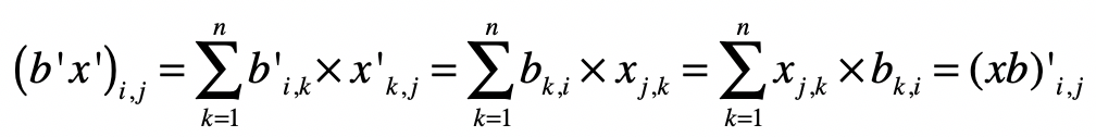 而对于\((XB)‘\)中的每个元素\(xb’\_{i,j}\),有: