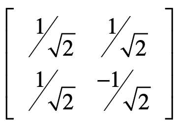多维的向量空间很难理解,所以我们还是从最简单的二维空间开始。首先,我们需要明白什么是二维空间中的正交向量。正交向量的定义非常简单,只要两个向量的点乘结果为0,那么它们就是正交的。在酉矩阵之中,矩阵和矩阵的转置相乘为单位矩阵,只有向量自己点乘自己值为1,而不同向量之间点乘值为0,所以不同的向量之间是正交的。