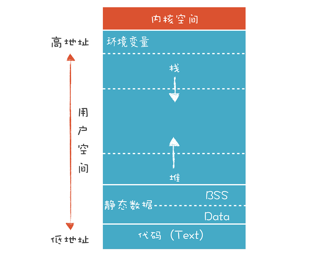 程序在运行时,操作系统会给它分配一块虚拟的内存空间,让它在运行期可以使用。我们目前使用的都是64位的机器,你可以用一个64位的长整型来表示内存地址,它能够表示的所有地址,我们叫做寻址空间。