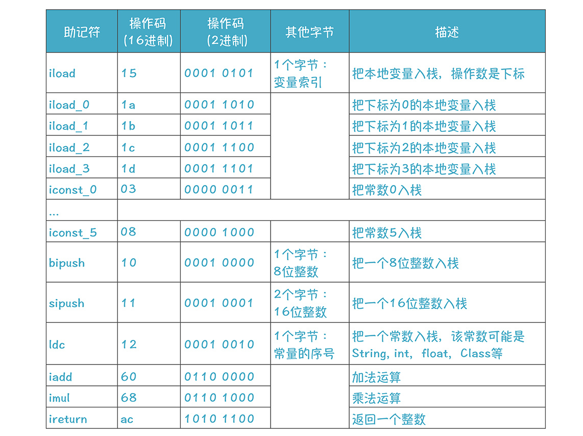 我提供了字节码中,一些常用的指令,增加你对字节码特点的直观认识,完整的指令集可以参见JVM的规格书: