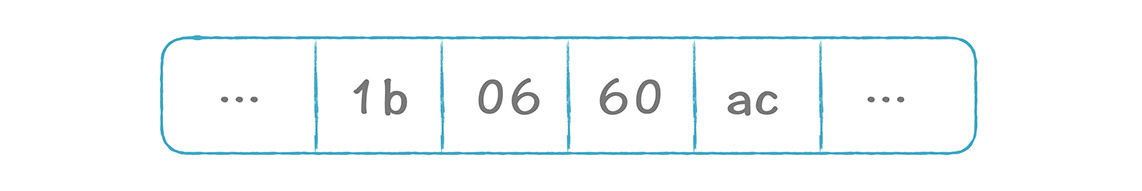 根据这些指令所对应的操作码的数值,MyClass.bc文件中,你所看到的那四行代码,变成二进制格式,就是下面的样子: