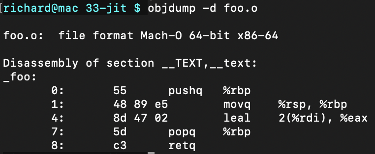 这不难,你把foo.c编译成目标文件,然后查看里面的机器码就行了。