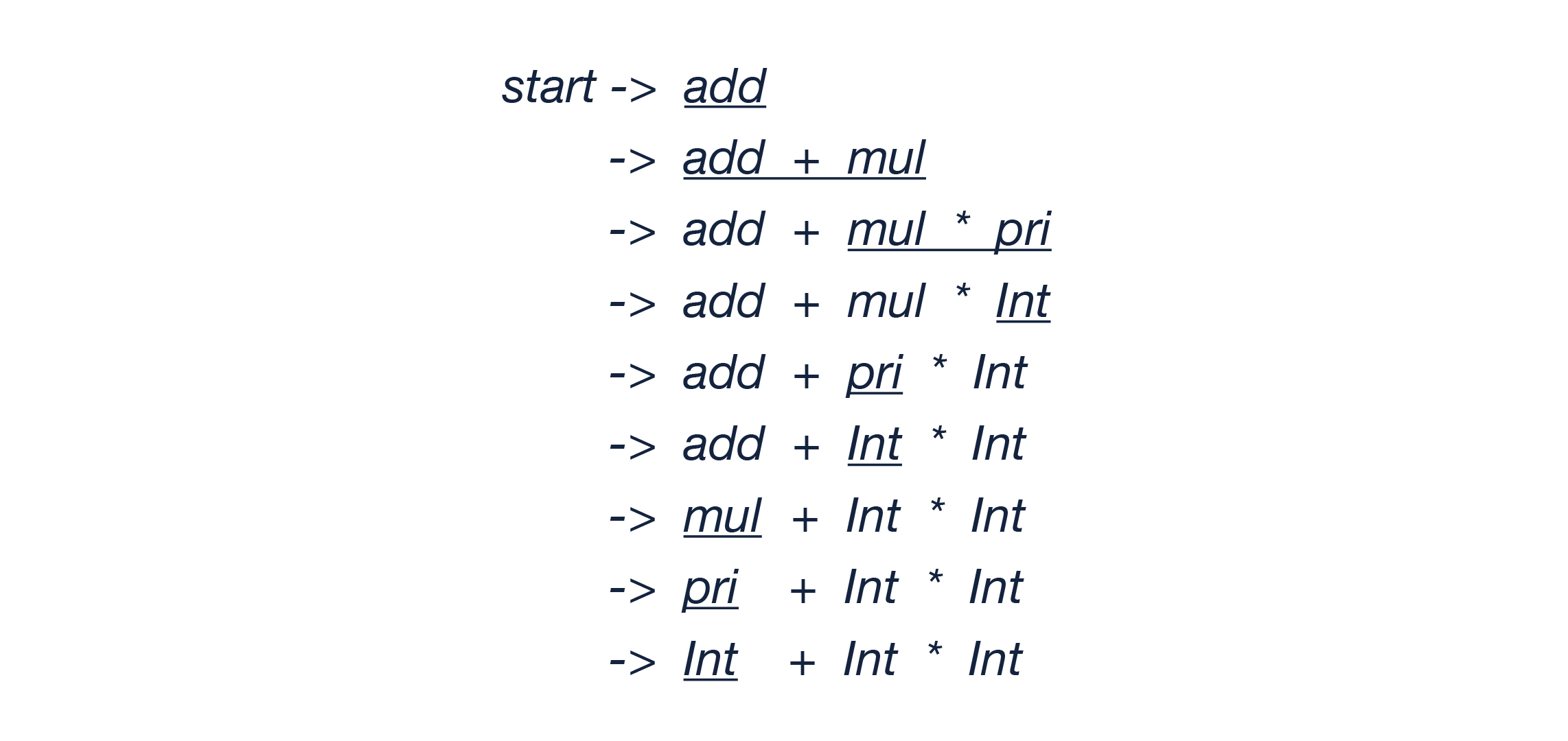 add' -> + mul add' | ε