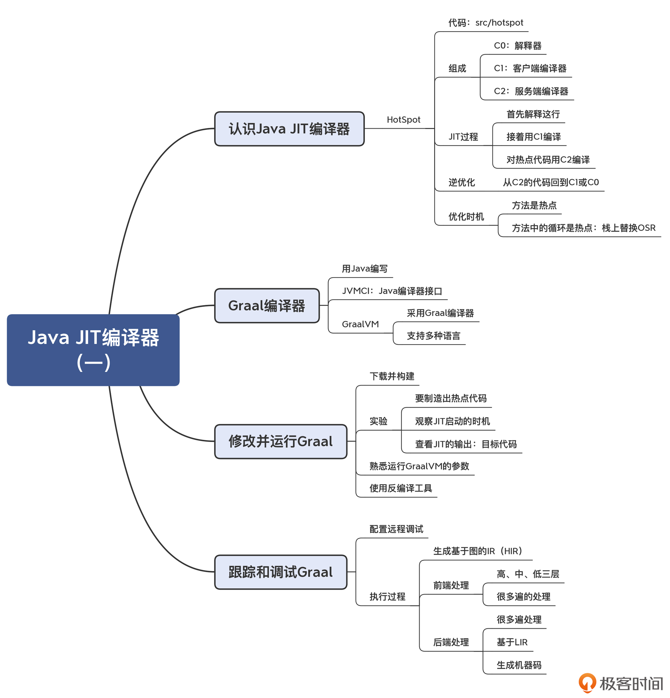 今天这一讲呢,我首先会带你理解JIT编译的基本原理;然后,我会带你进入Graal编译器的代码内部,一起去修改它、运行它、调试它,让你获得第一手的实践经验,消除你对JIT编译器的神秘感。