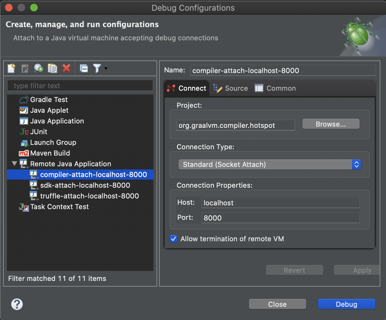 Graal是用Java编写的,因此你也可以像调试普通程序一样调试它。你可以参考源代码中的这篇与调试有关的文档。