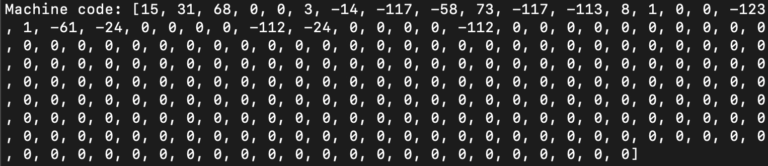 System.out.println("Machine code: " + java.util.Arrays.toString(result.getTargetCode()));
