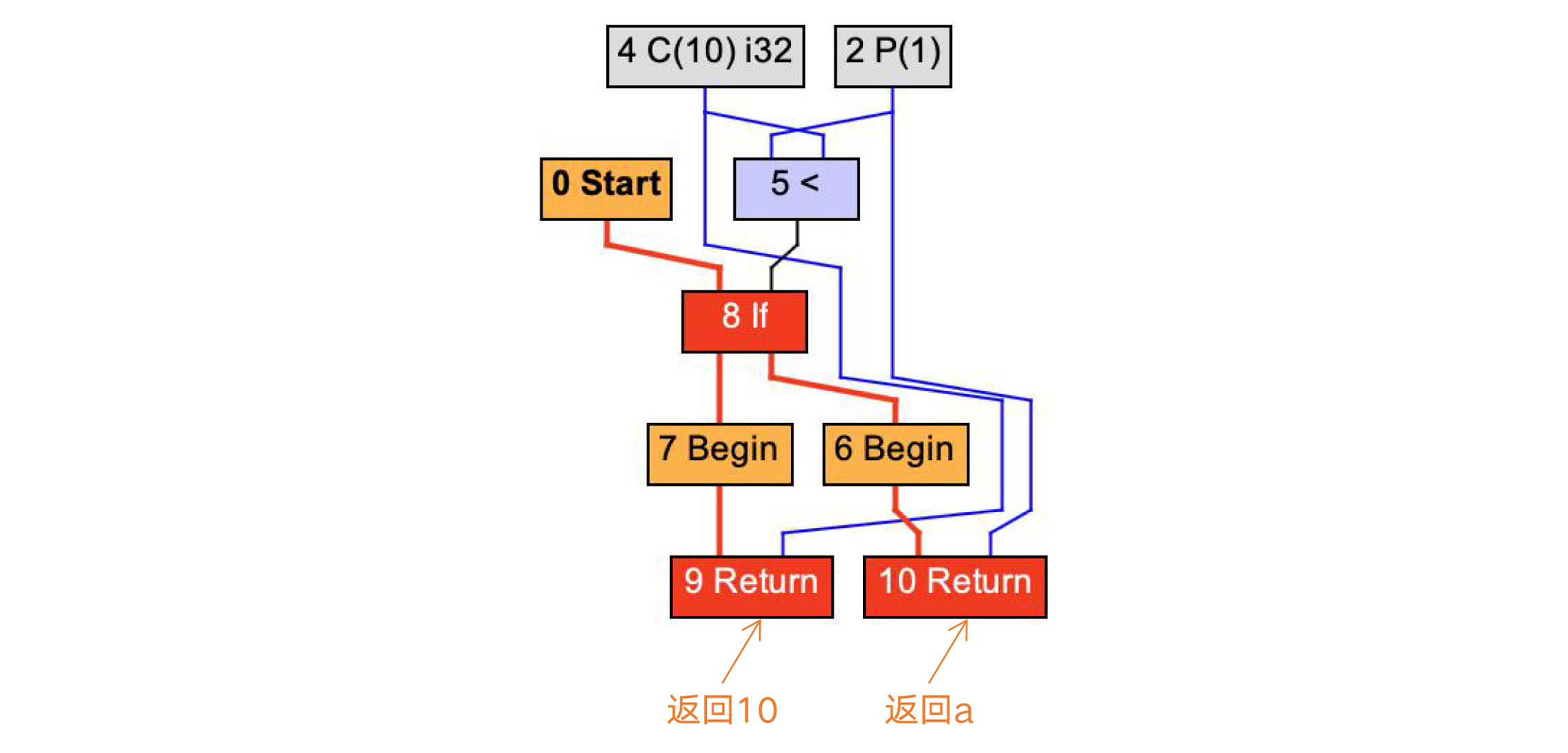 我还是以Foo.atLeastTen()方法举例。在正常情况下,它生成的HIR是下面的样子,根据条件表达式的值(a<10),分别返回10和a。