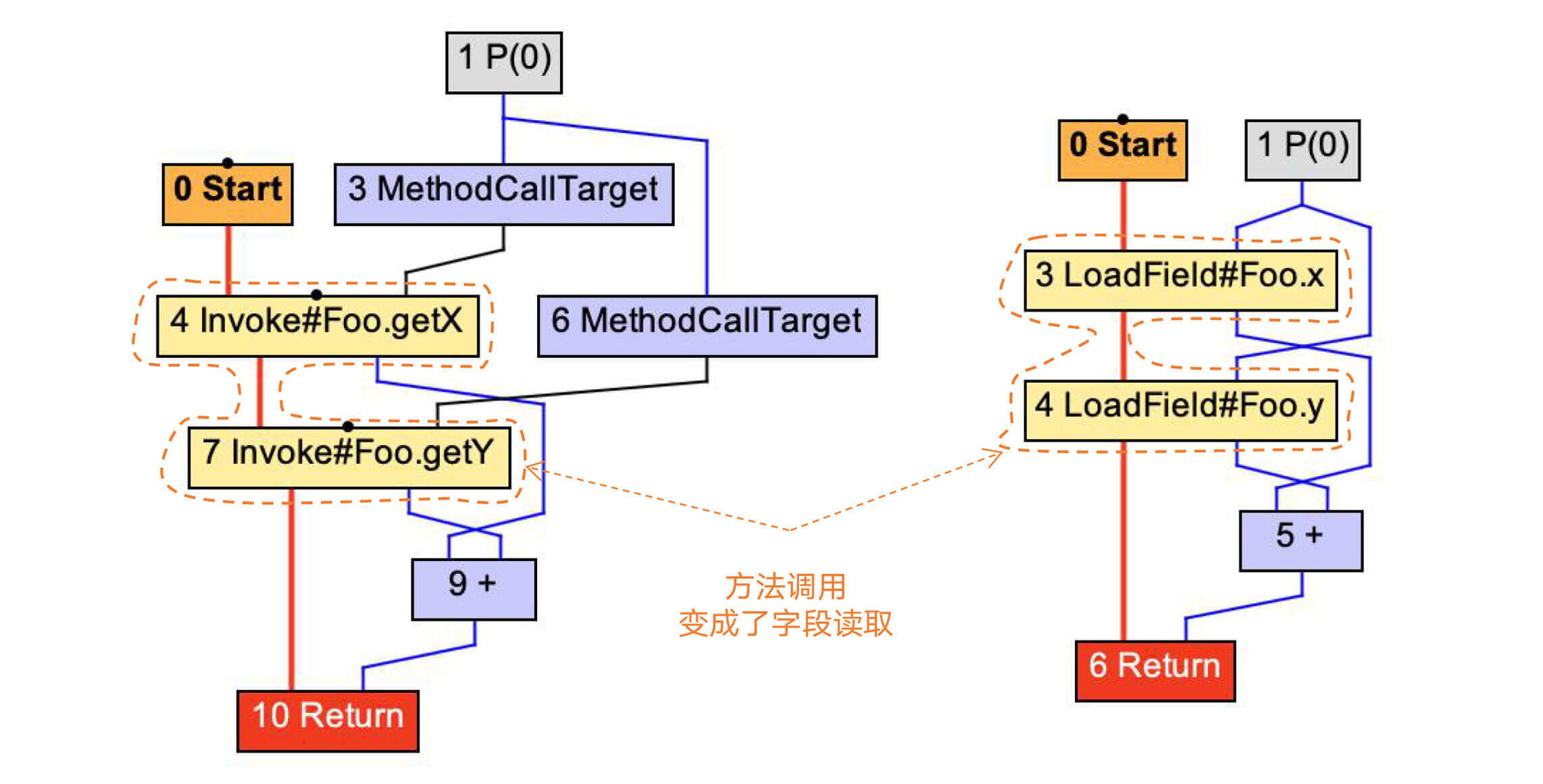 比如,针对add2示例方法,我们采用内联选项优化后,方法调用被替换成了LoadField(加载成员变量)。