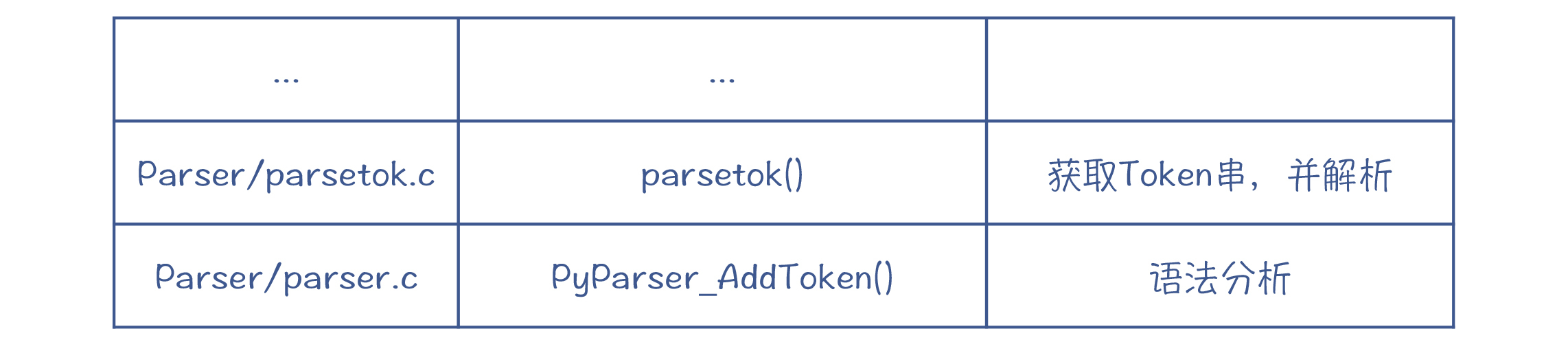首先,你可以看一下tokenizer.c的tok_get()函数。你一阅读源代码,就会发现,这是我们很熟悉的一个结构,它也是通过有限自动机把字符串变成Token。