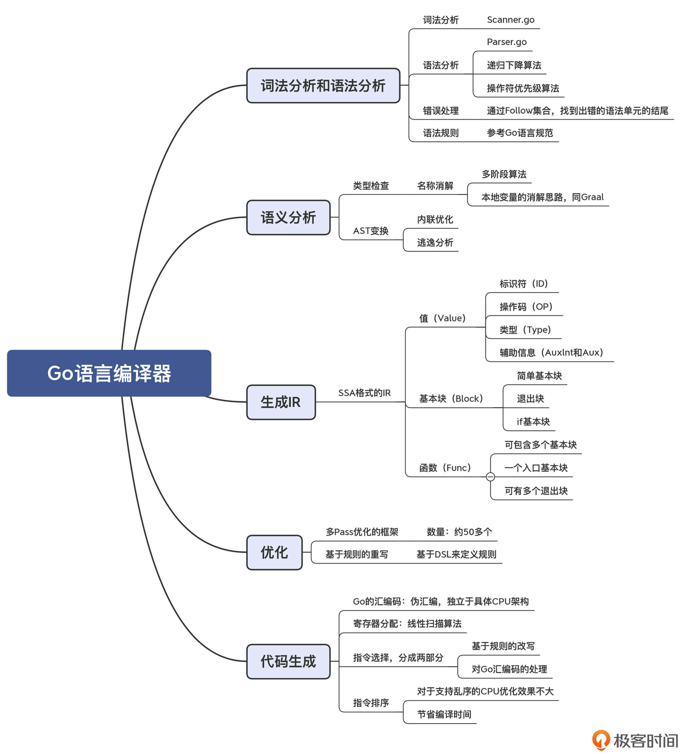 所以,在已经研究了多个高级语言的编译器之后,我们可以拿Go语言的编译器,把整个编译过程再重新梳理和印证一遍。