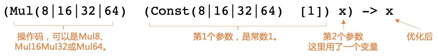 我们来看几个例子:在generic.rules中,有这样一个机器无关的优化规则,它是把x*1的运算优化为x。