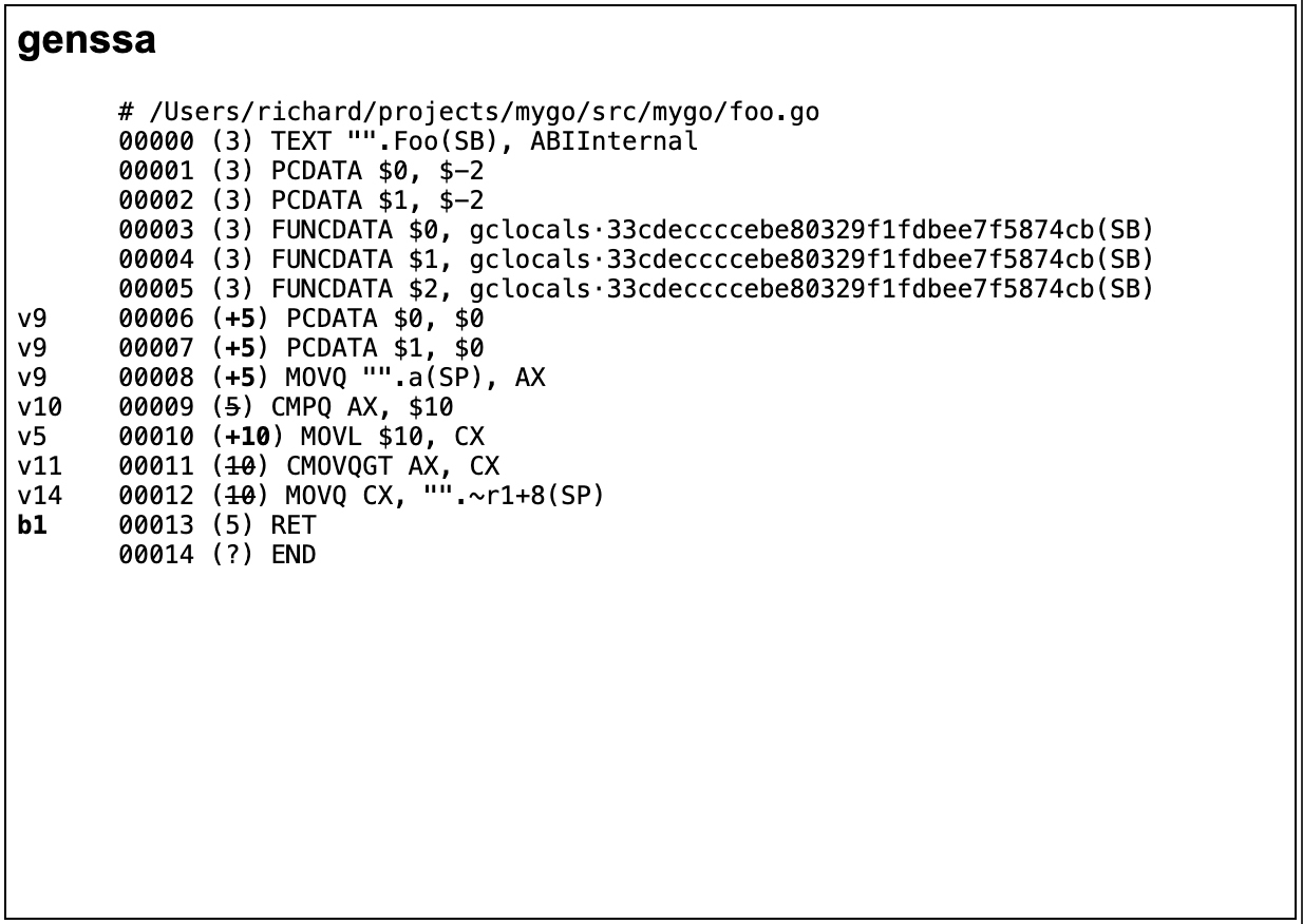 GOSSAFUNC=Foo go build -gcflags '-S' foo.go