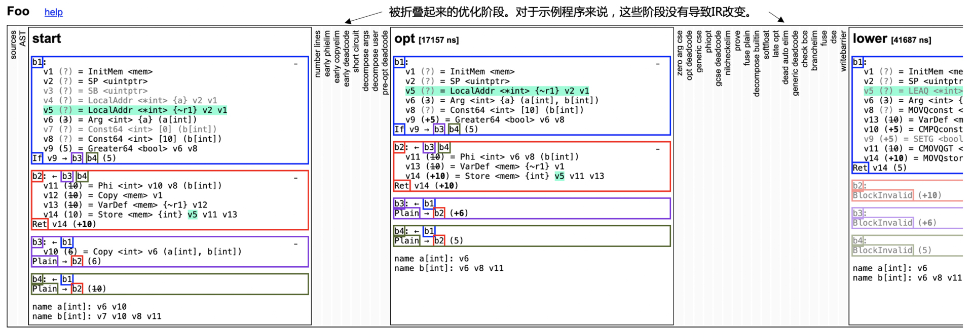 在命令行中输入下面的命令,让gc打印出为foo函数生成的IR。在当前目录下,你能看到一个ssa.html文件,你可以在浏览器中打开它。